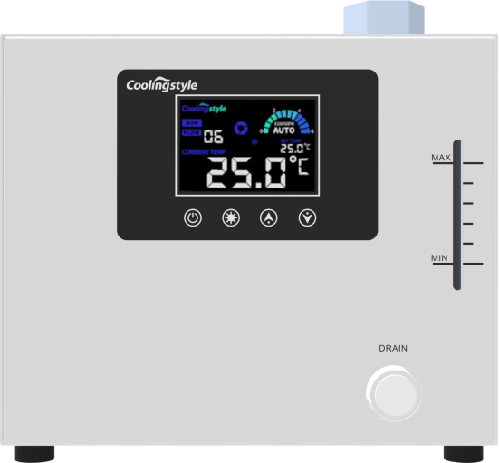 定频冷水机是一种压缩机以固定转速运行的冷却设备。它的压缩机、风机、水泵等主要部件均以恒定频率(通常为50Hz)工作,依靠启停控制来调节制冷量,实现设备温度的维持。定频冷水机通过温度控制器检测系统温度: