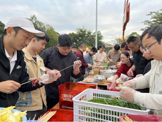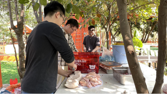 为确保年会团建活动顺利进行,当天上午便有同事提前抵达营地,开始场地布置与烧烤食材的清洗、切菜和腌制工作。肉类、蔬菜和配料都被仔细处理、分装妥当,确保后续烧烤环节可以顺利进行,让大家到场后能够轻松投入到活动中。